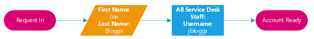 When automating a process, we can see how standards simplify the task. Without standards we would need to account for every scenario that the request could follow, allow for breaks in the process, enable human interaction, and provide error correction. With standards we can allow automation to generate the username, validate the inputs and hand over the item to the requester.